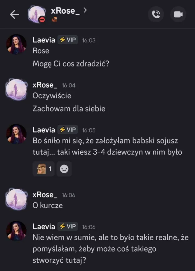 Rose: Szefowa dosłownie obok ogarniała coś jeszcze a ja tu konwersacje prowadzę i nie pyta nawet czemu tak wypisuje 🤣