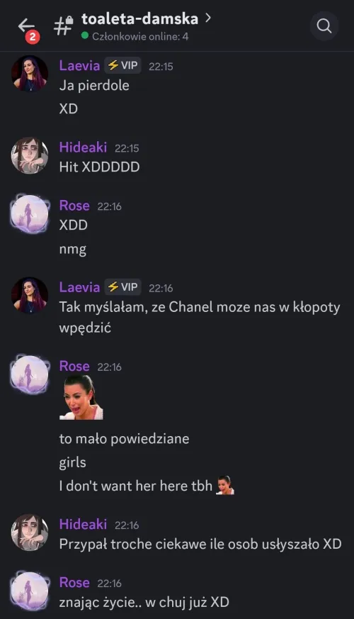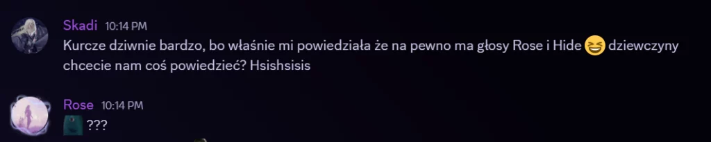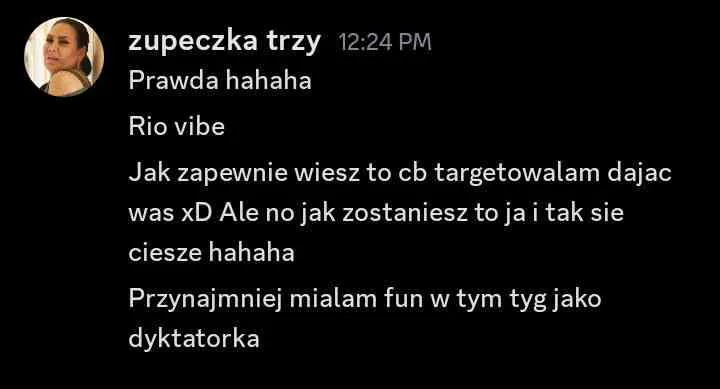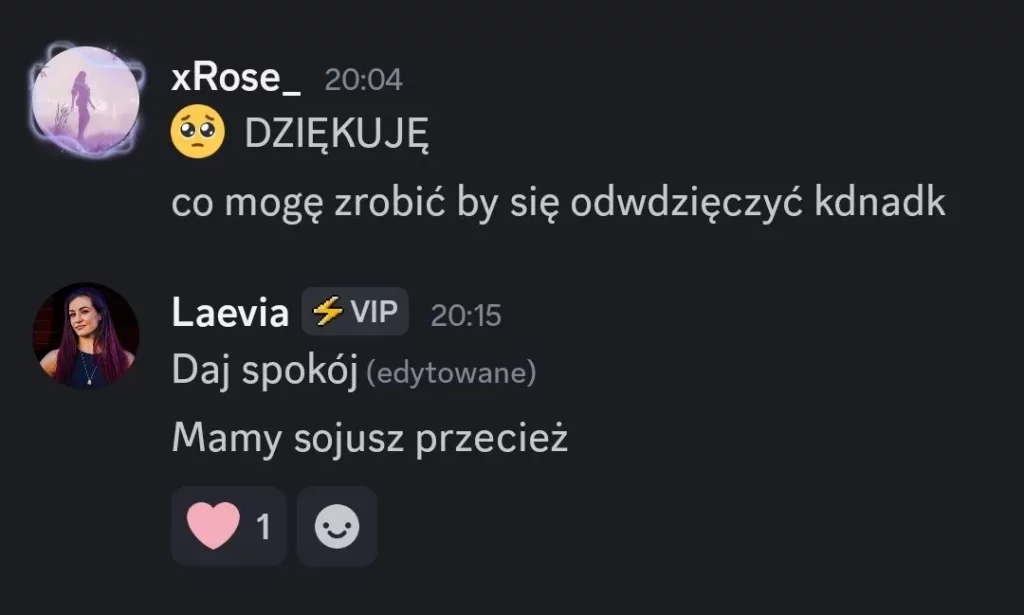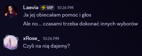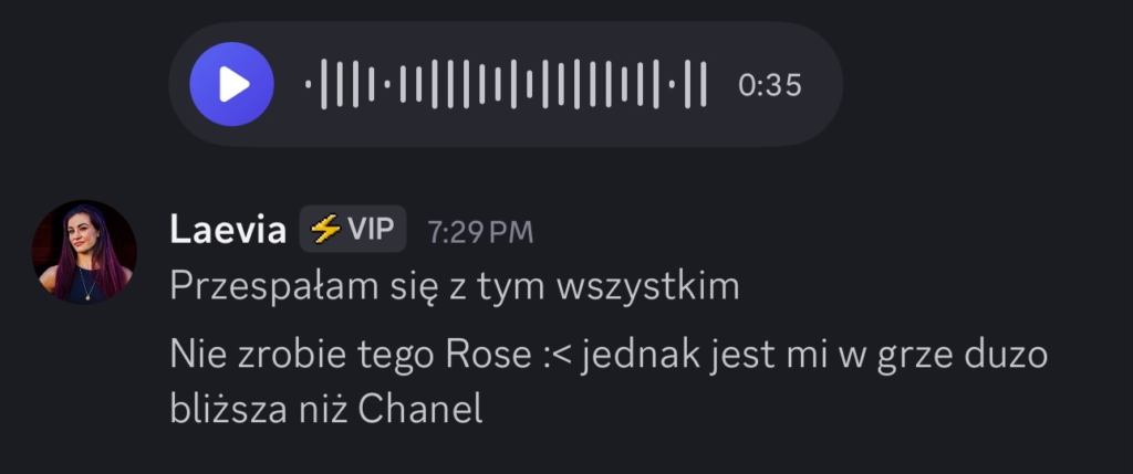 Chanel: Starałam się pisać z każdym, ale faktycznie nieraz średnio to wychodziło xD chyba za bardzo skupiłam się na pisaniu na serwerach, a za mało na priv i dlatego tak wyszło