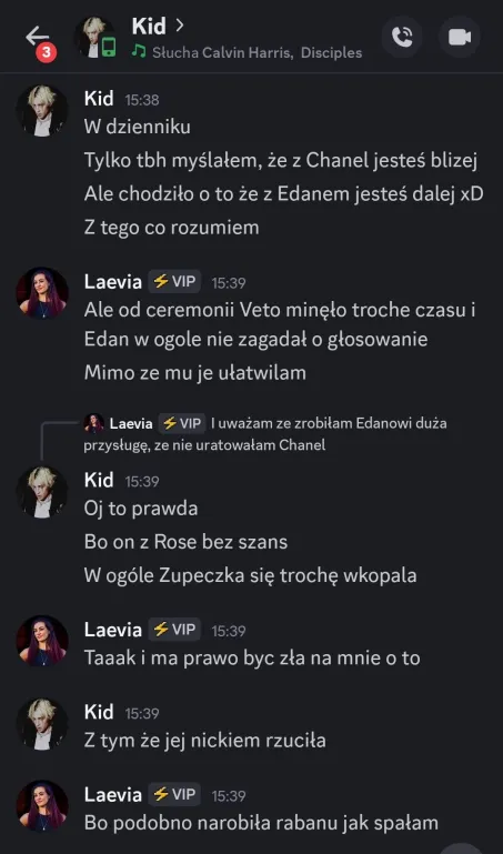 Chanel: Tak. Chciałam podziękować za grę. Trochę sflopiłam, ale może następnym razem się uda lepiej. Starałam się, ale coś nie pyklo. Dziękuję prowadzącym za super zadanka i za przyjęcie mnie do gry ❤️