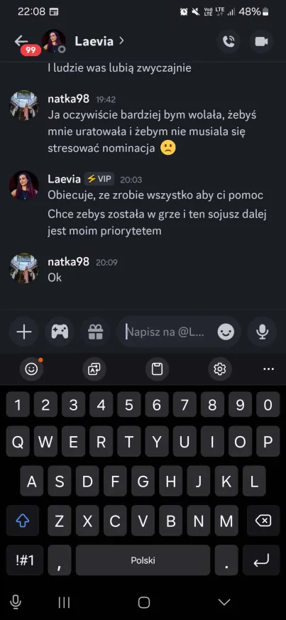 Owca: CHANEL – nie chciałaś przed nominacją pisać ze mną na priv, a po eksplodowałaś i chciałaś być moim sojusznikiem, może w innej edycji bye!