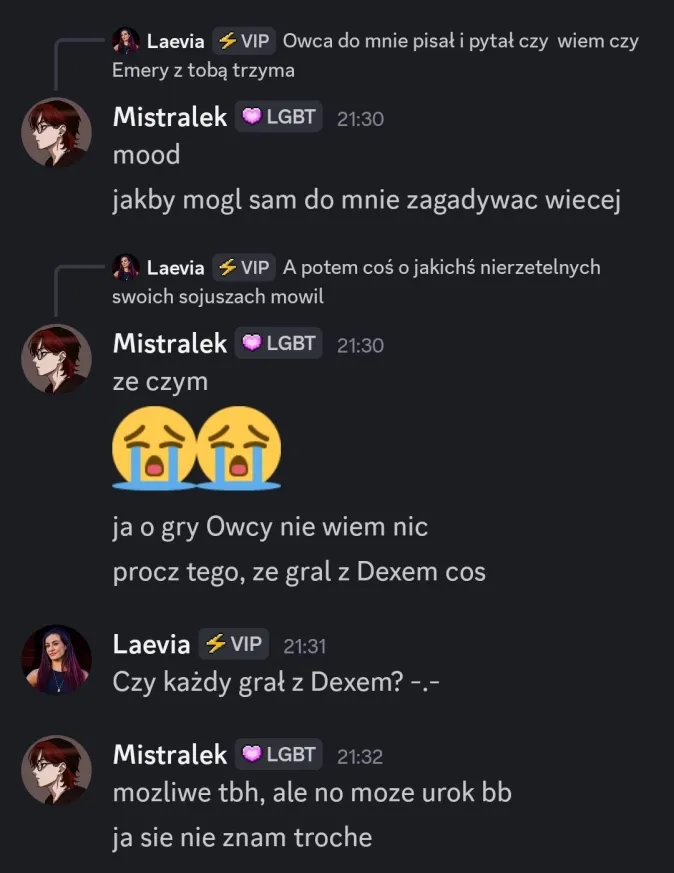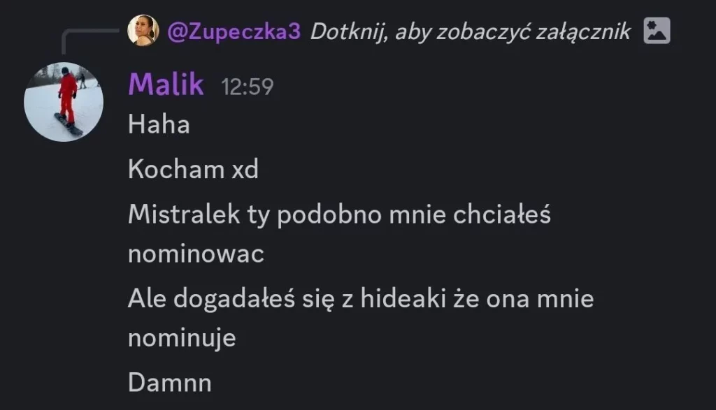 Mistralek: Owca – Hej Owca, myślę, że spodziewałeś się takiego obrotu spraw. Szczerze gdybyś był obok Malika czy Zupeczki, to stawiam, że byś się wyratował. Po prostu niefortunnie się złożyło z jakimś ratowaniem się 😭😭 Ale miło Cię było poznać w tej edycji i czekam na kolejne Twoje edycje