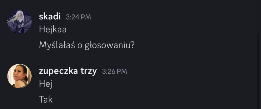 Aven: Laevia chyba zaglosowala tak jak jej Zupeczka powiedziala bo tradycyjnie przegrala swoj glos w jakis papier kamien nozyce