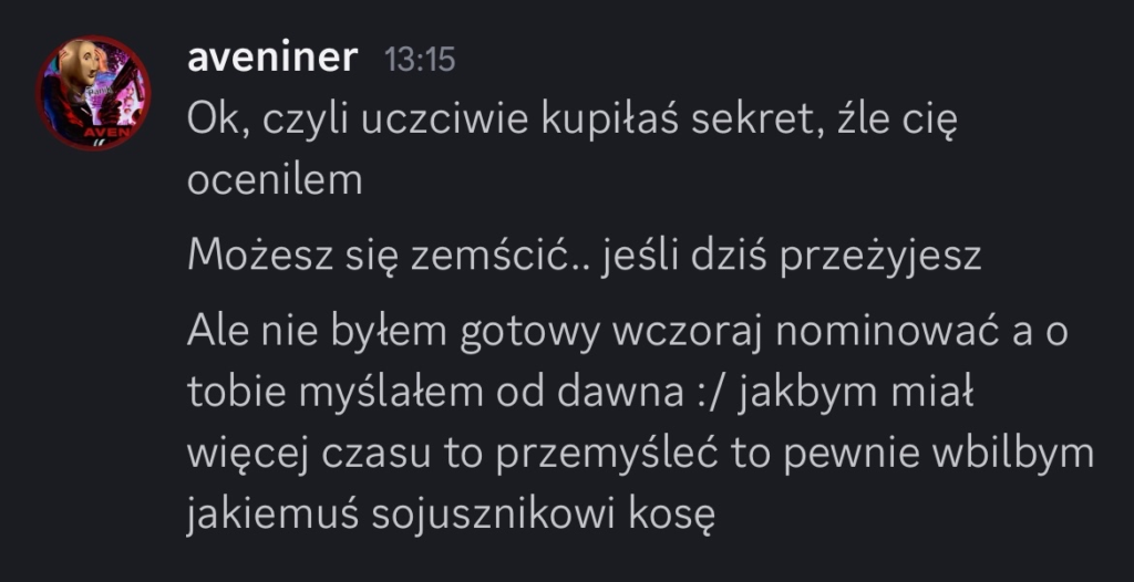 Owca: Aven – poprostu nie miałem z nim sojuszu, ale zbudowal moje zaufanie i zasluguje na wygraną!