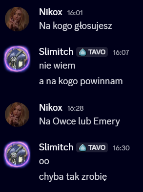 Aven: Z drugiej strony, ten tydzien by ci normalnie pomogl bo jednak zebrales malo glosow