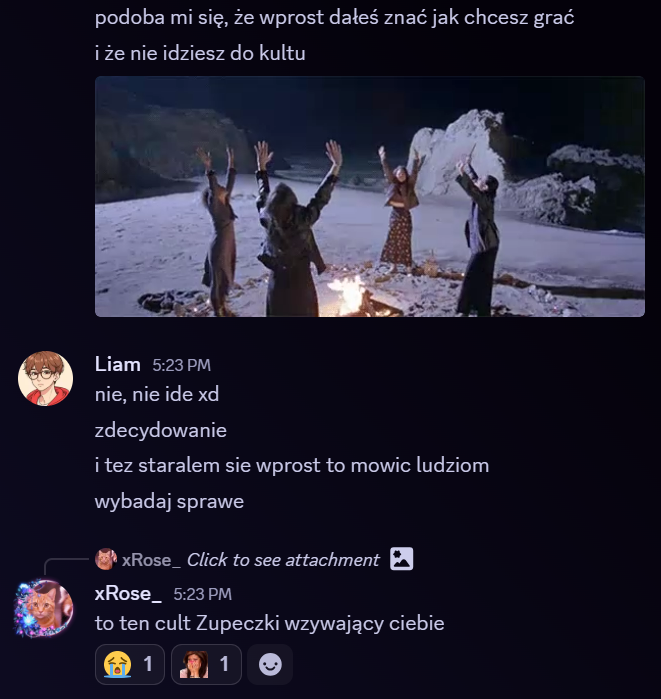Gdybym dowiedziała się o czymś z innego terminu niż wtedy co i ja i on i rose odjebalismy to byłaby inna historia ale skoro jedyny argument obozu zupeczki dotyczy tamtejszych wydarzeń to trochę mid