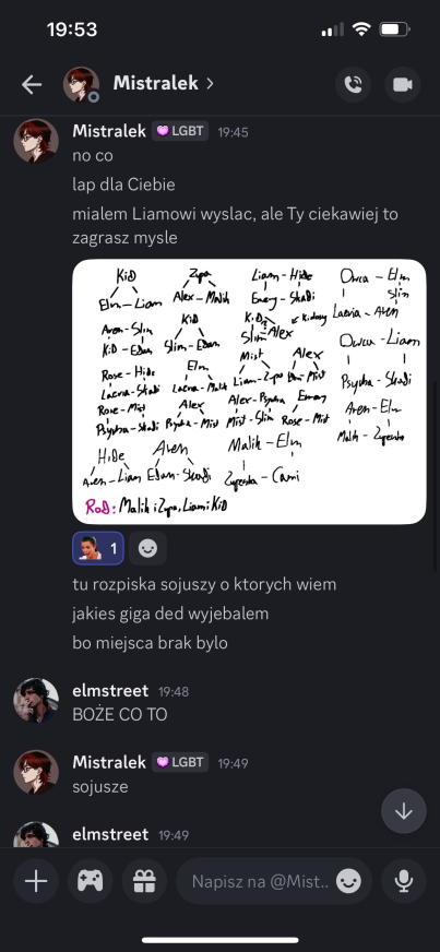 Ach ten Elmstreet xd niech mi zostawi sojuszników!!!! Bo potem będzie przychodził do mnie na priv again że noo ja to tak chciałem z tobą bardzo grać Nick i z Mistralkiem ale wy mnie ciągle targetujecie. Było się nie sojuszowac z osobami, które były i są przeciwko mnie, duh!