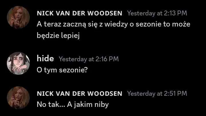 Wcześniej był wywód na kim każdy z nas się w tej grze zawiódł, ale już sama tego nawet nie ogarniam, więc nie komentuje tego. 😄