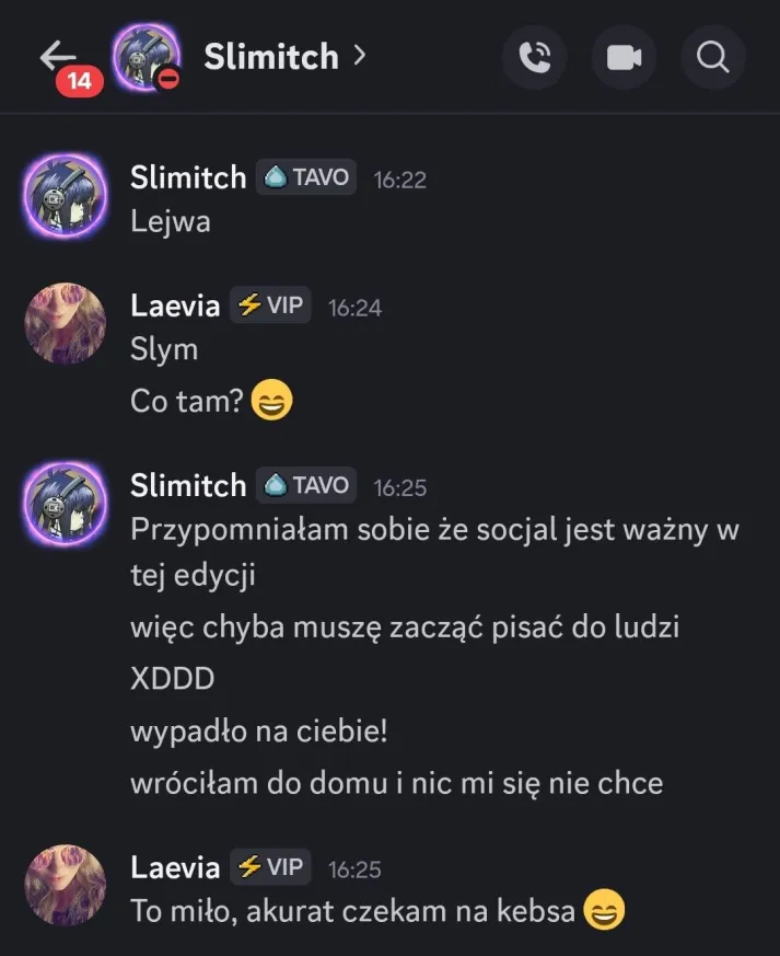 To sobie przypomniała… ja sie jeszcze póki co przed tym wzbraniam i nie piszę do ludzi z głupotami, ale chyba też trzeba będzie zacząć? Znaczy no, nie liczę, że uda mi się trafić do finału, ale jak ma mi to pomóc dłużej w grze zostać, to czemu nie 😄