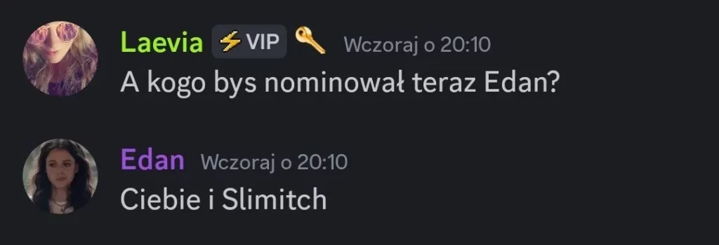 Jestem też ciekawy kto poleci obok Edana na blok, bo obstawiam, że Slimitch, przynajmniej ja bym tak zrobił….chociaż jest niestety opcja, że Emery może pójść na ten blok też, bo Laevia podobno jej jakoś tak odpisywała bez przekonania, Emery mi się żaliła. Takzeee no kurcze, ja naprawdę liczę, że jednak Edan Slim Malik blok zobaczę, to byłby tydzień roku serio, bym poswietowal aż, ale nastawiam się pozytywnie, bo widać, że Laevcia z rozwagą pochodzi do tego Hoha, powypisywała ludziom, że nie ma do nich żalu i takie inne bzdety, więc na pewno chce sobie wzmocnić pozycję w grze i myślę, że jak się skupi na Edanach to jej się to uda najbardziej tbh