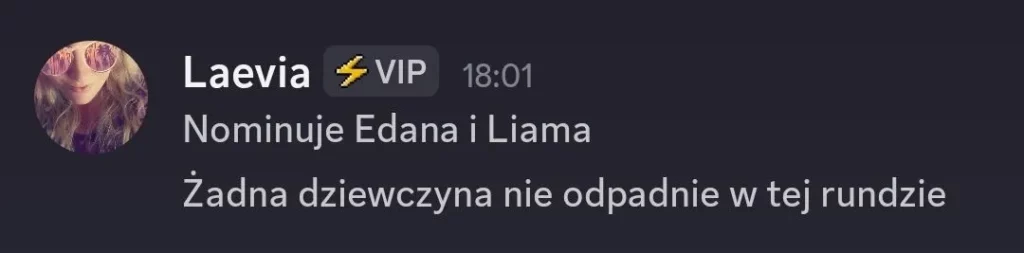 Ooooo a jednak Laevia mi się przyznała kogo nominuje i będzie to….Liam xDD. Szczerze nie wiem jak to skomentowac, no dopóki Edan się wyjebie albo Malik, a nie on to spoczko, niech go sobie nominuje tak szczerze on już na tym bloku ma doswiadczenie