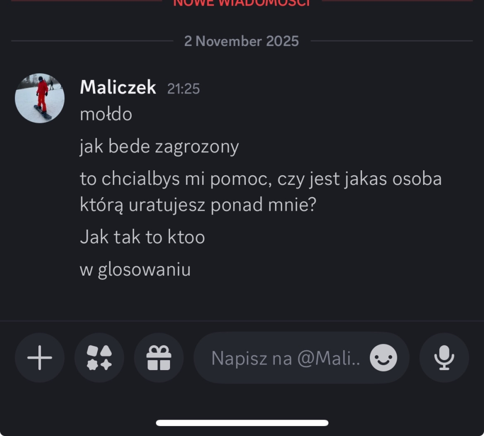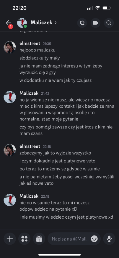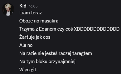 Kid chyba troche sie zagalopowal w wiadomosciach xd zapytal mnie czy wole by odpadl Malik czy Edan, ale troche bardziej wole Edana. a ten od razu, ze trzymam z Edanem. xd