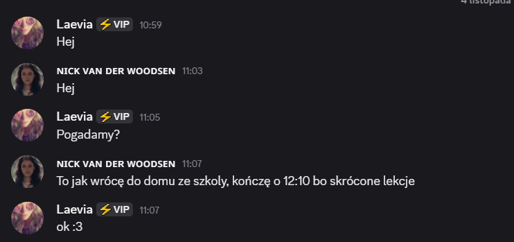 pogadałem trochę z laevia, okazało się, że nie brała mnie nawet pod uwagę, a przynajmniej tak mi napisała (może to prawda może nie)- ale finalnie jestem safe, laevia nie jest głupia, zdaje sobie sprawę, że będą potrzebni jej ludzie, a ja na ten moment naprawdę stałem się neutralny dalej myślę xdddd na razie jest mi tutaj wygodnie, ale przyjdzie w końcu czas, w którym będę musiał się określić i wybrać drogę, dzięki której zajdę dalej