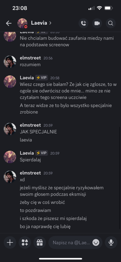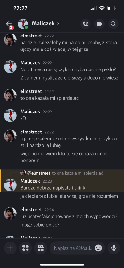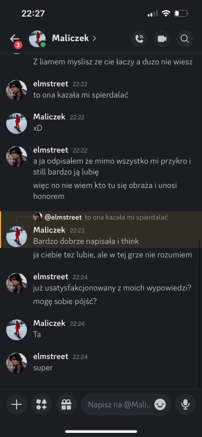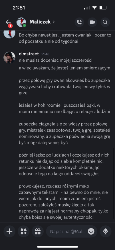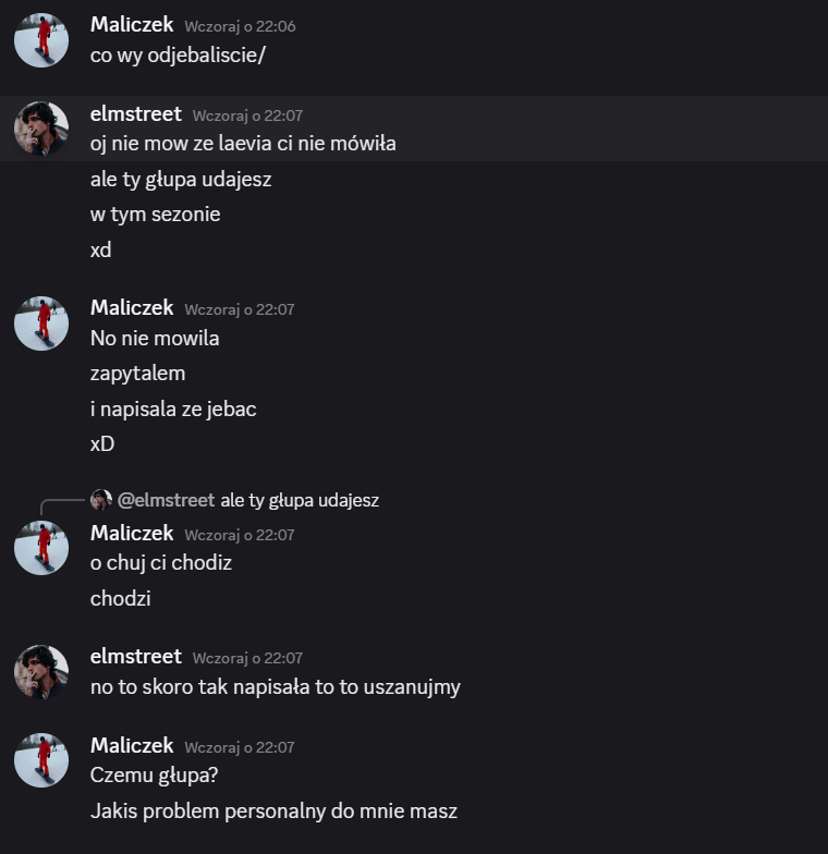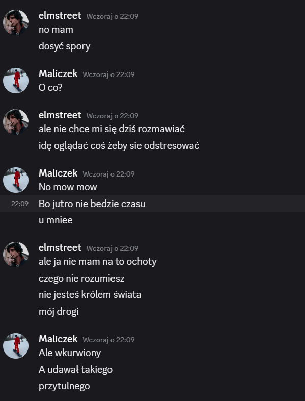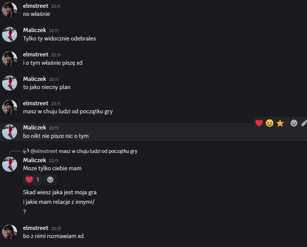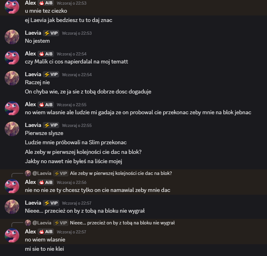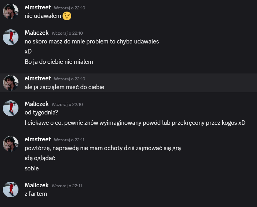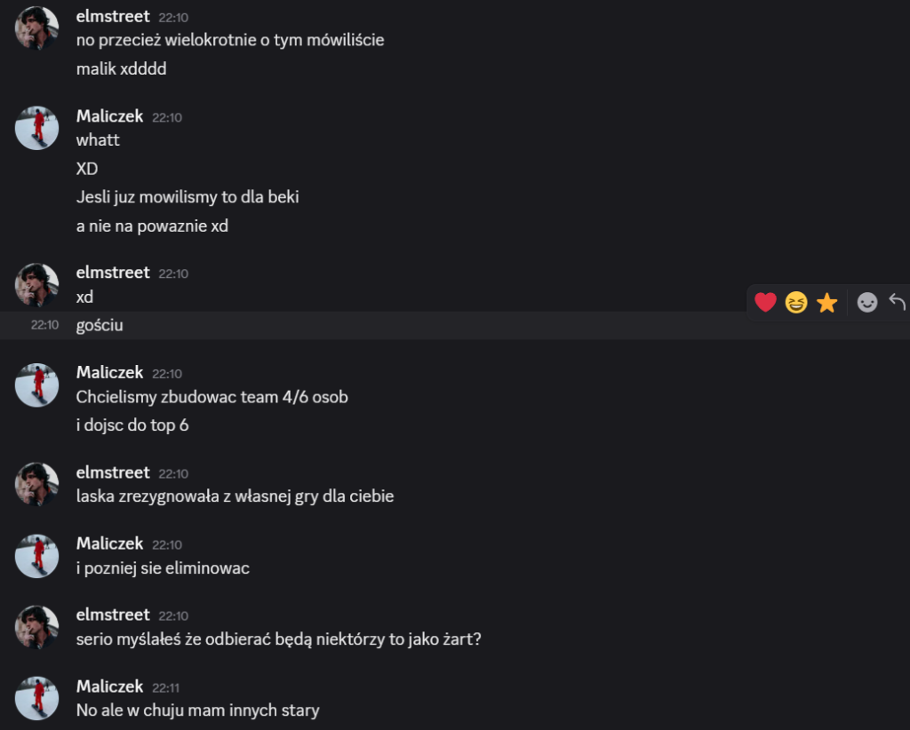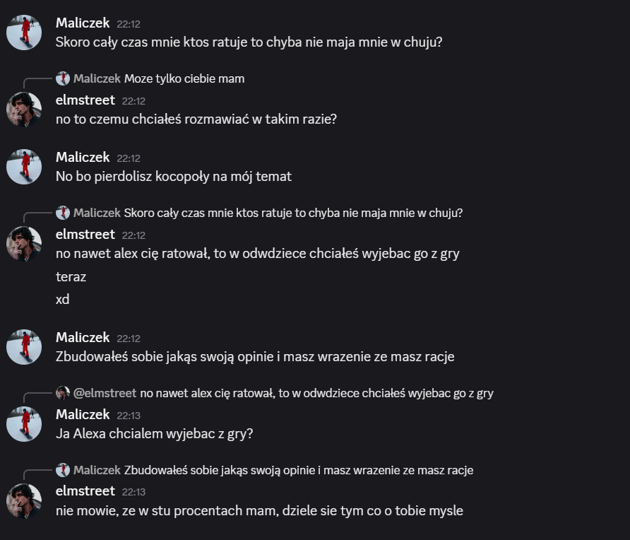 Elmstreet: alex – szkoda, że tak wyszło, jesteś świetnym gościem, ale szkoda, że dałeś się malikowi i laevii, mogliśmy wyjebać malika kiedy była na to okazja… miałem dobre zamiary 😭 trzymaj się cieplutko ❤️